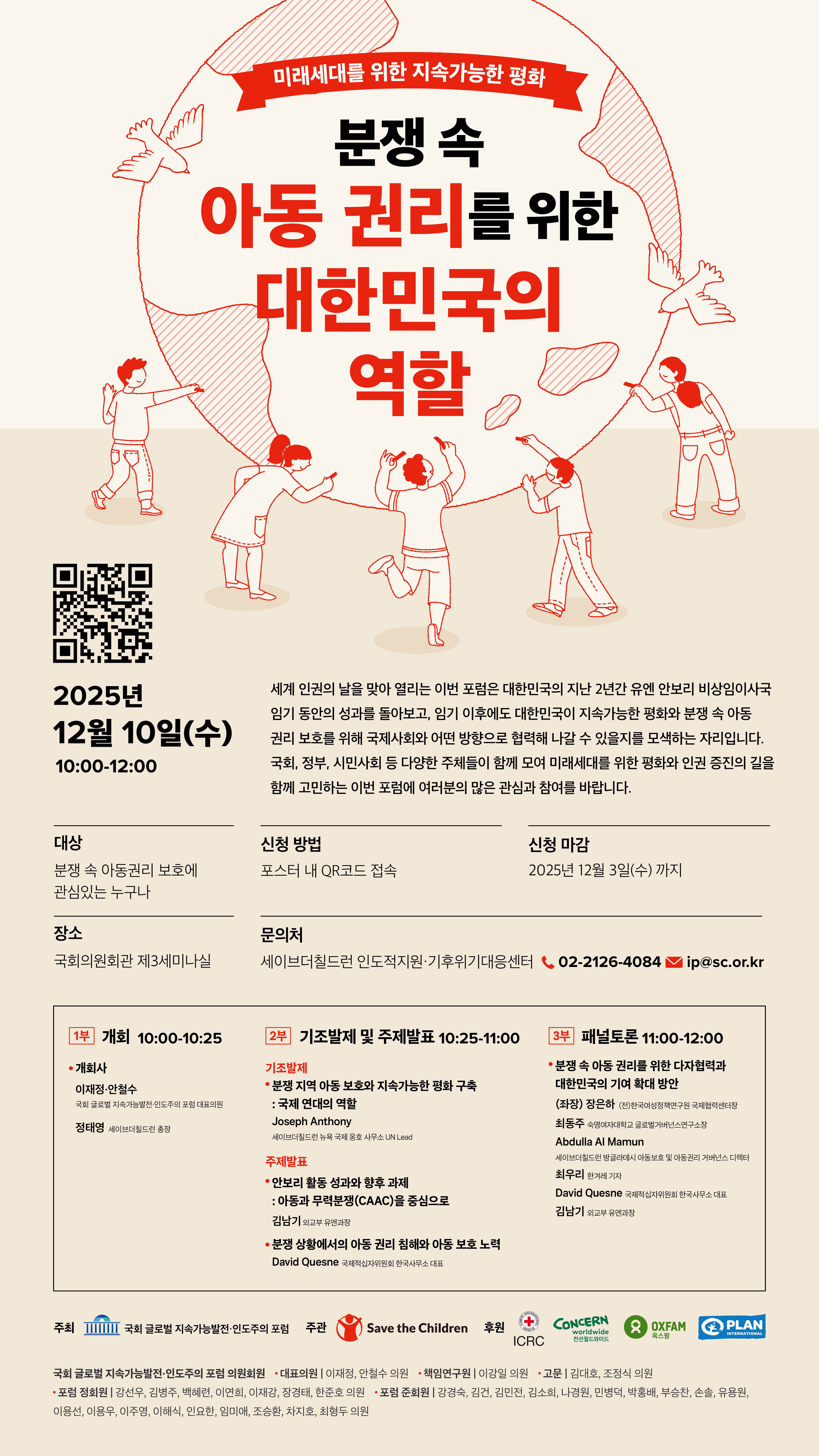 [공지] [Forum] 세이브더칠드런: 미래세대를 위한 지속가능한 평화 - 분쟁 속 아동 권리를 위한 대한민국의 역할 포럼